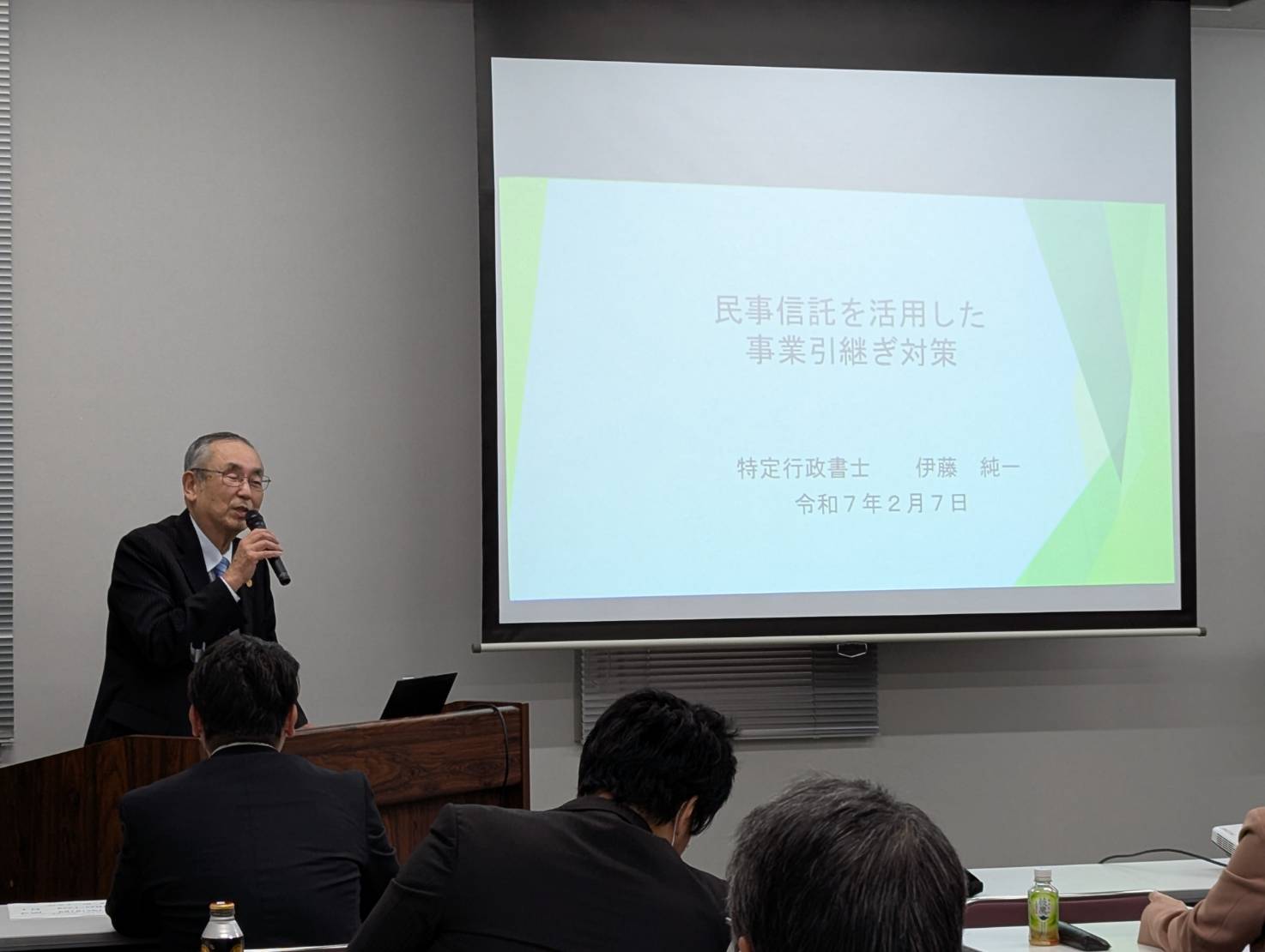 今回の研修会は民事信託を活用した事業引継ぎ対策をテーマとし、支部会員の伊藤純一会員に、相続の分野の中から同族企業の事業引継ぎに焦点を当てて、民事信託の活用方法についてご説明いただく内容でした。